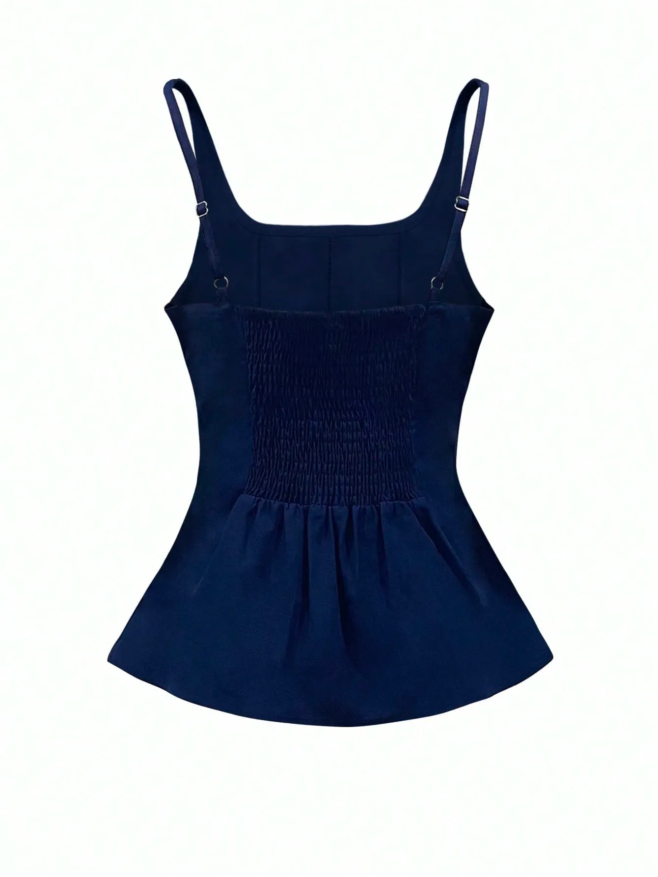 Este diseño combina un ajuste ceñido al cuerpo con un delicado vuelo en la cintura que añade sofisticación.