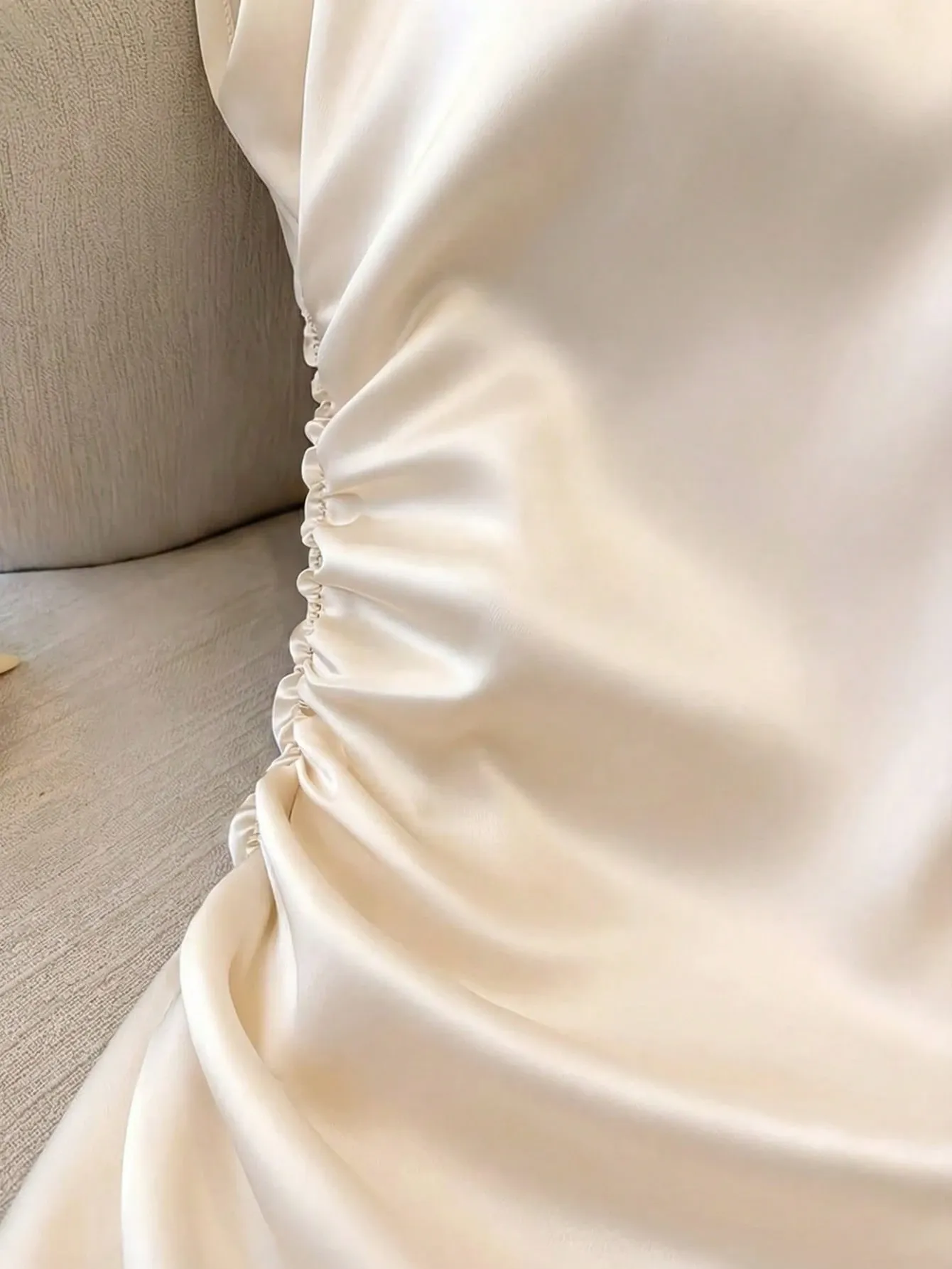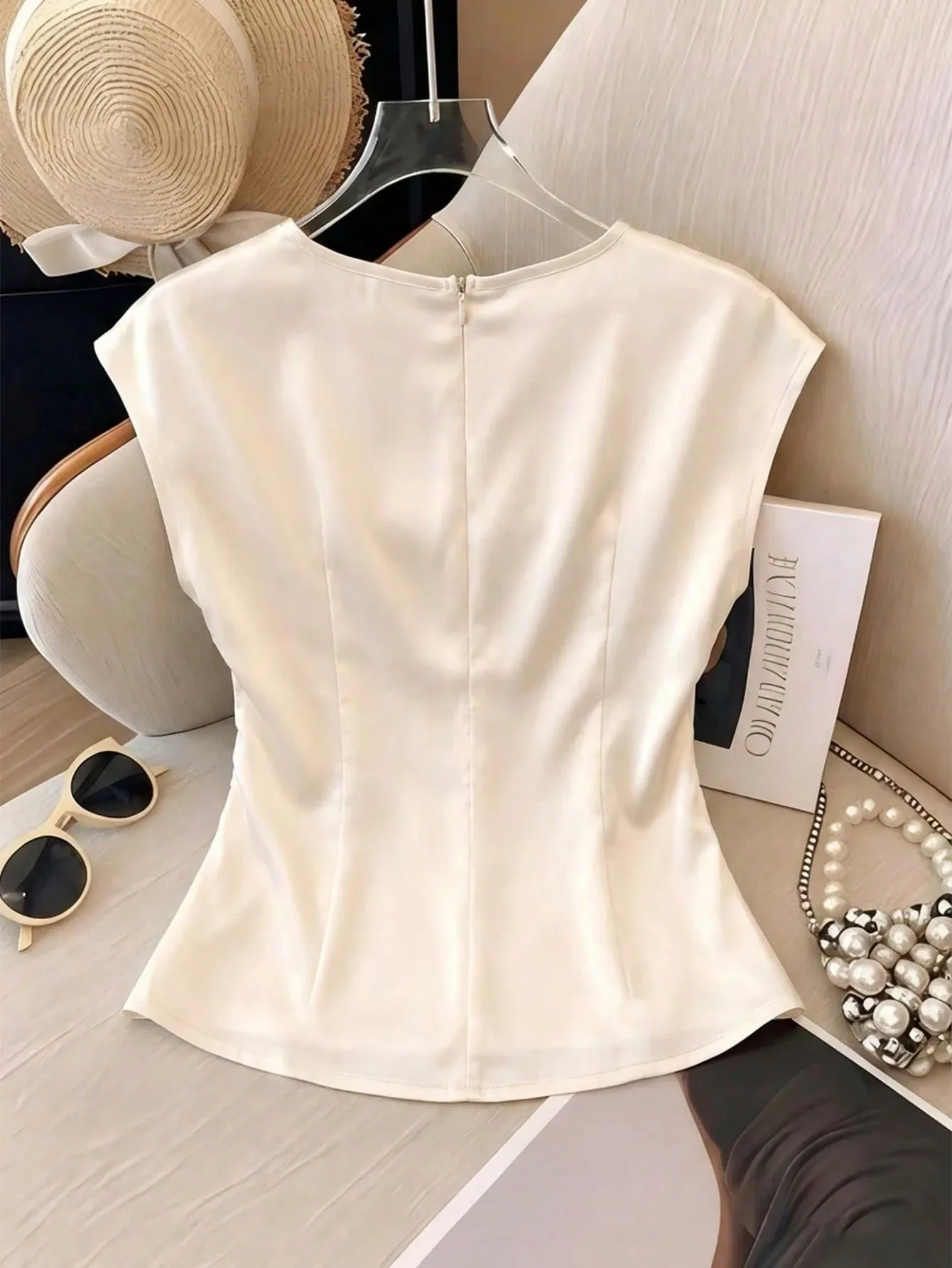 Camisa de satín manga corta cuello redondo elegante | Beige talla M | Disponible (1) | Entrega hoy (pedido antes de 14:00:00) |