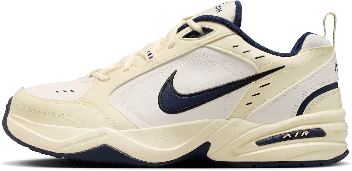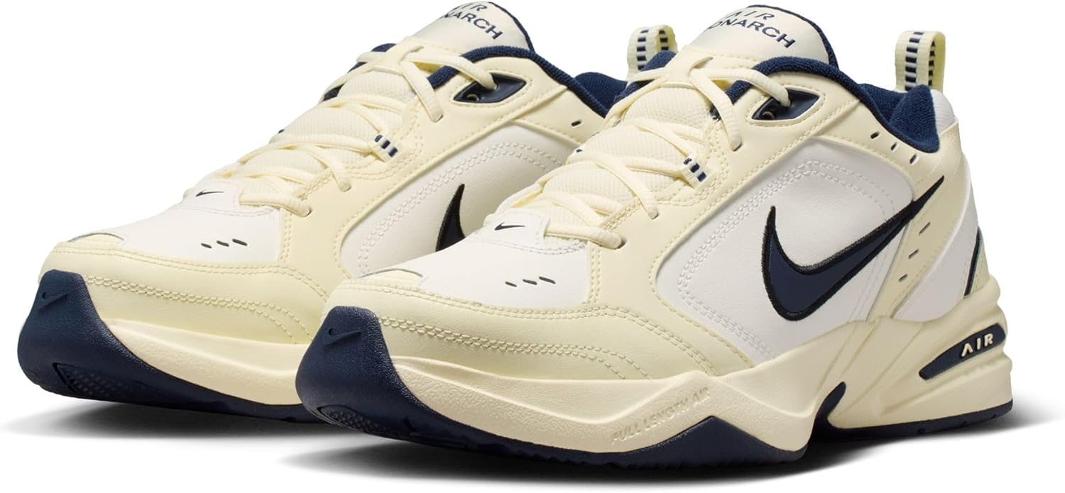 Zapatos de entrenamiento Nike Air Monarch IV para hombre te preparan para un entrenamiento cómodo con cuero duradero en la parte superior para mayor apoyo. Una entresuela de espuma ligera con una unidad Air-Sole encapsulada de longitud completa amortigua cada zancada en el zapato de hombre Nike.