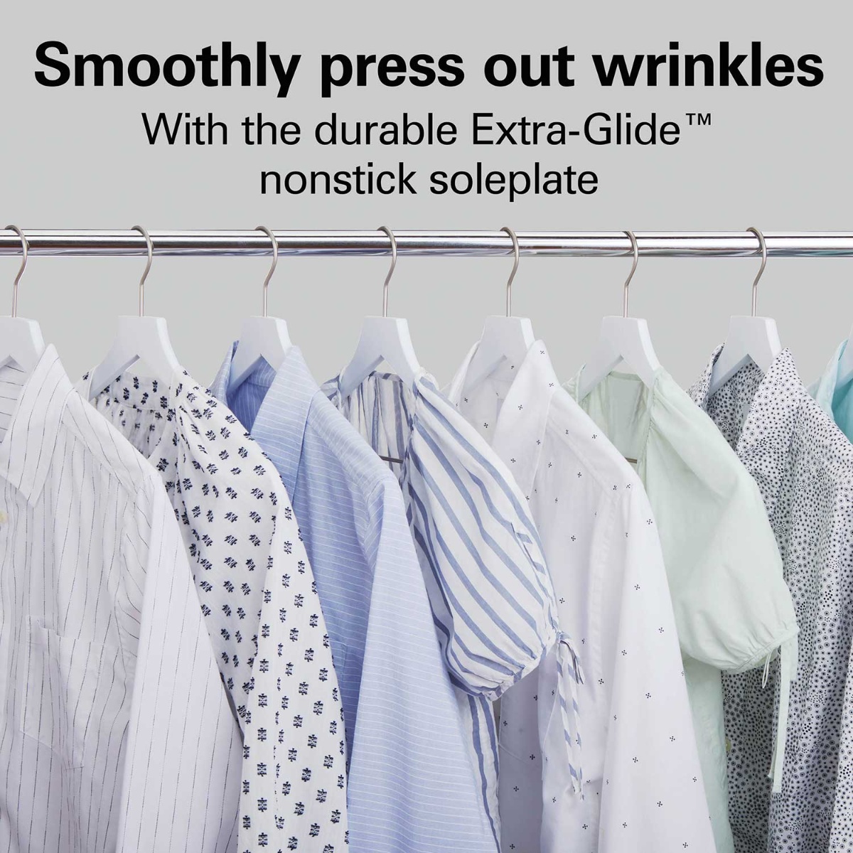 Elimine las arrugas con facilidad gracias a la resistente suela antiadherente Extra-Glide™.