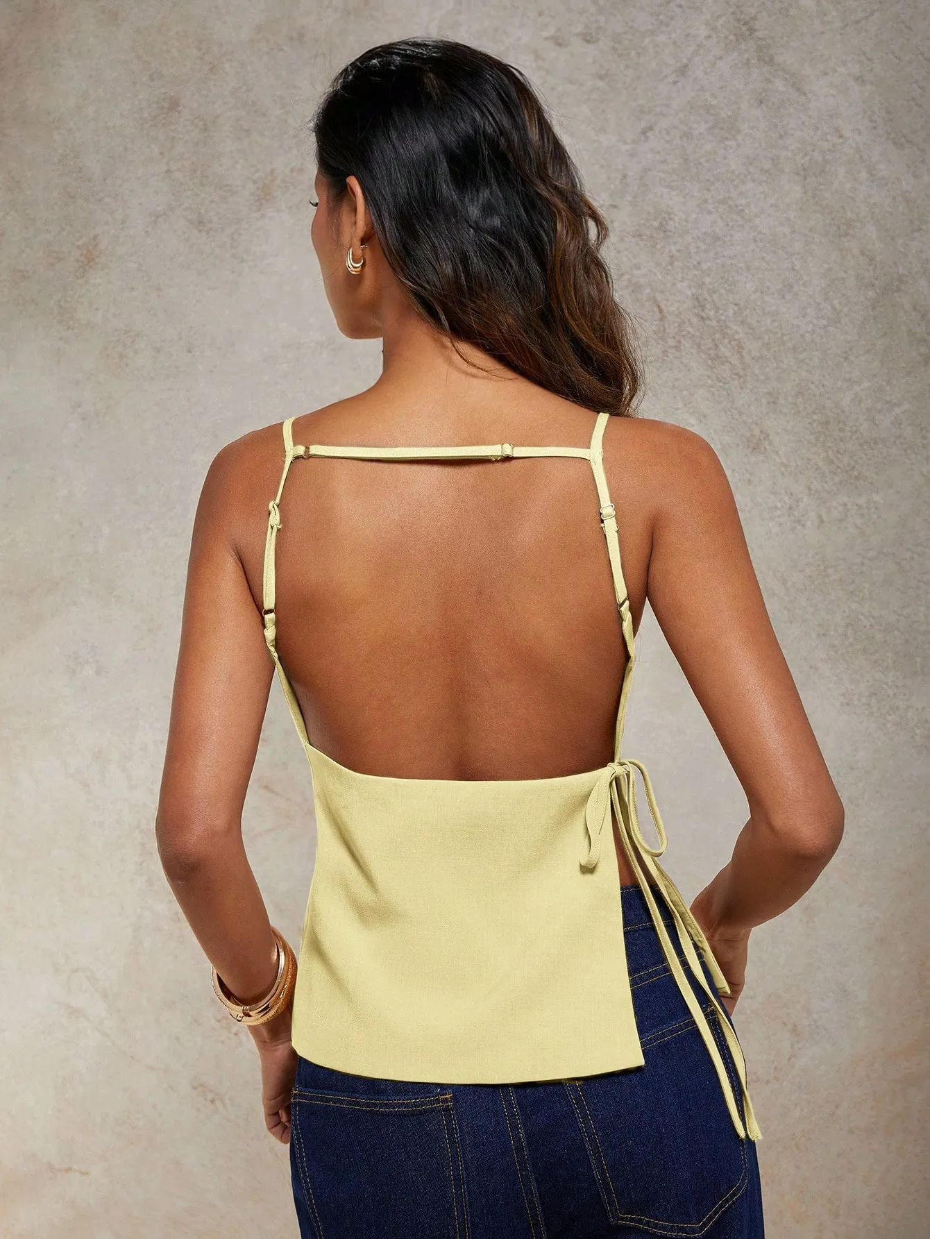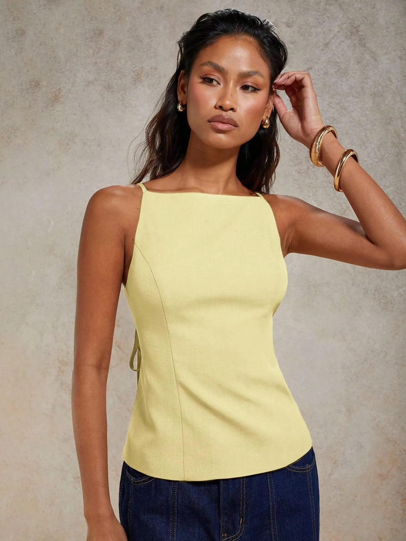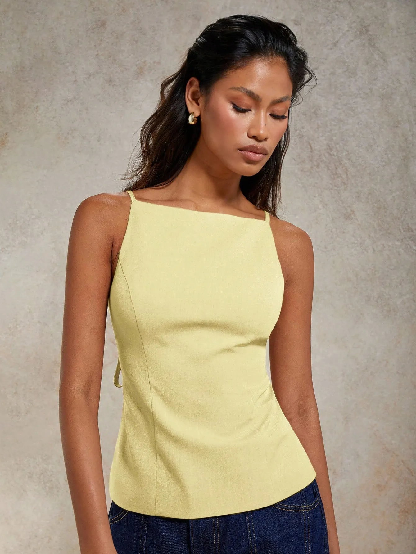 Añade un toque de luz a tu clóset con este top de tirantes en color beige vibrante.