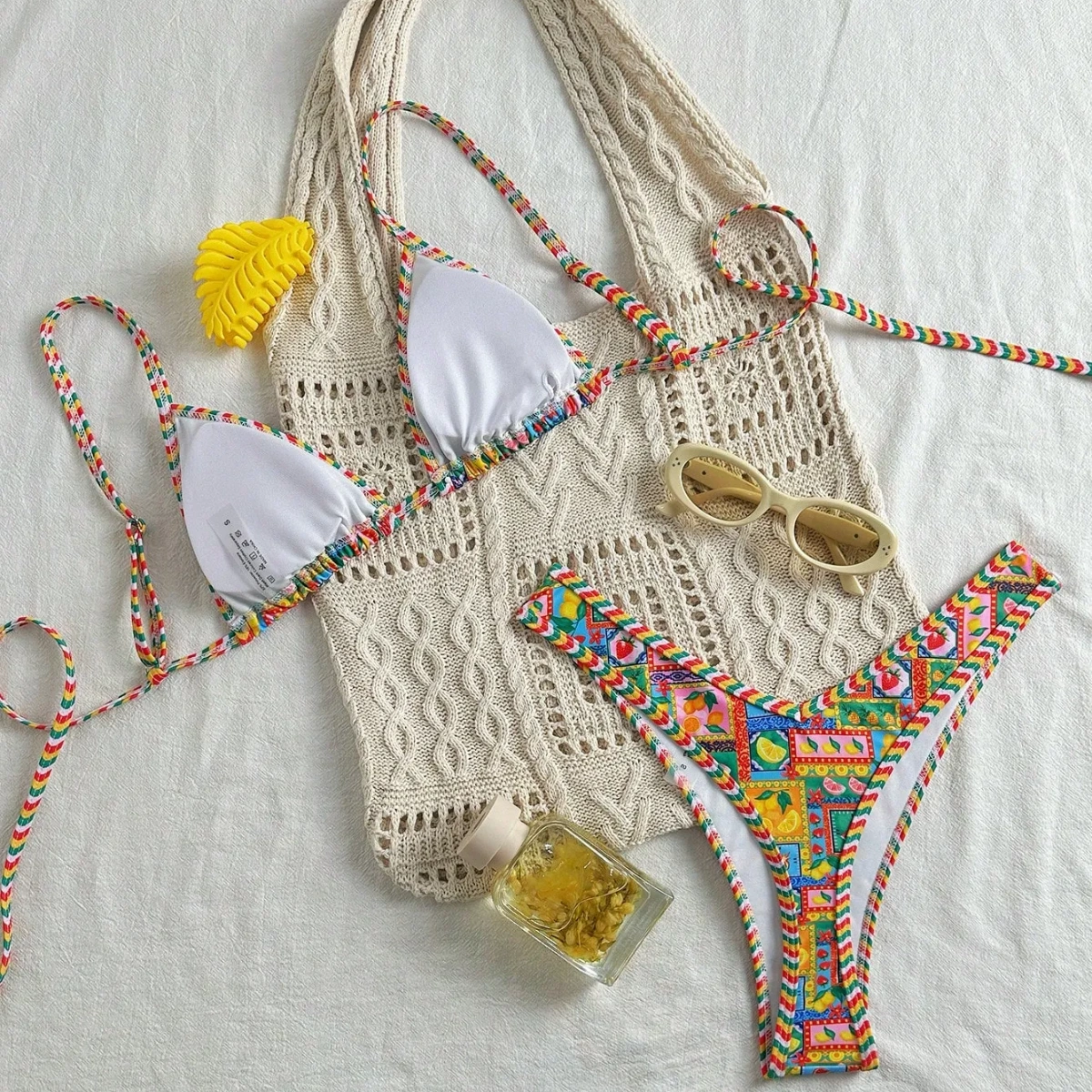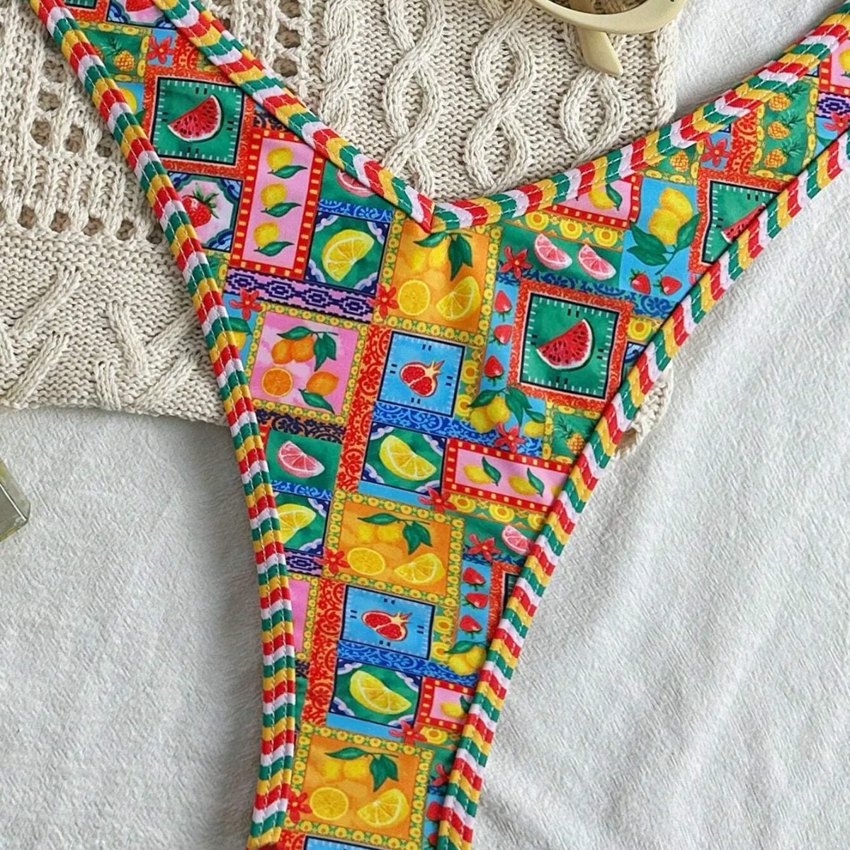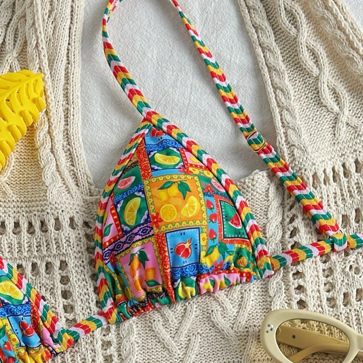 Traje de baño de Bikini de tirantes finos y estampado floral