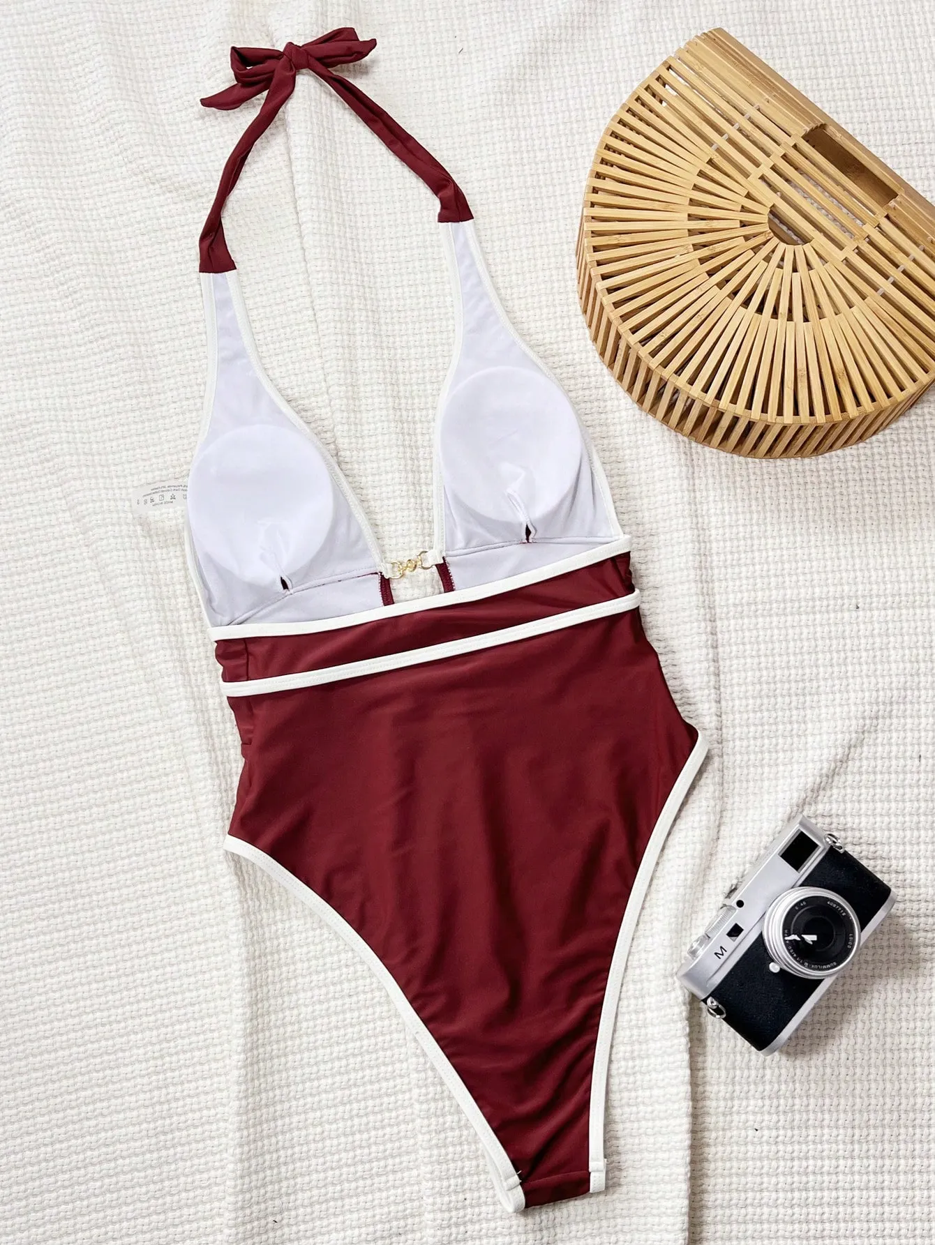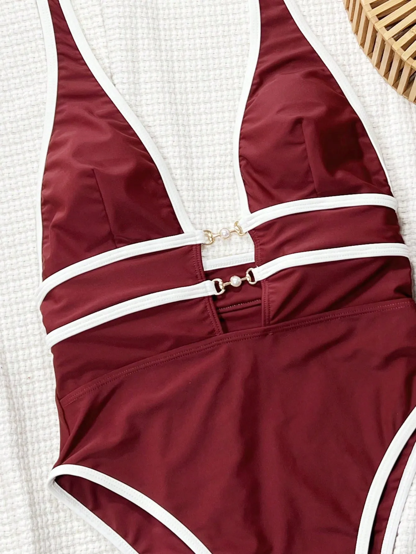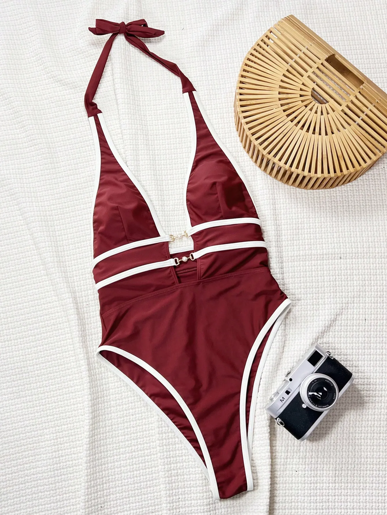 Traje de baño de una pieza con cuello en V profundo y espalda descubierta