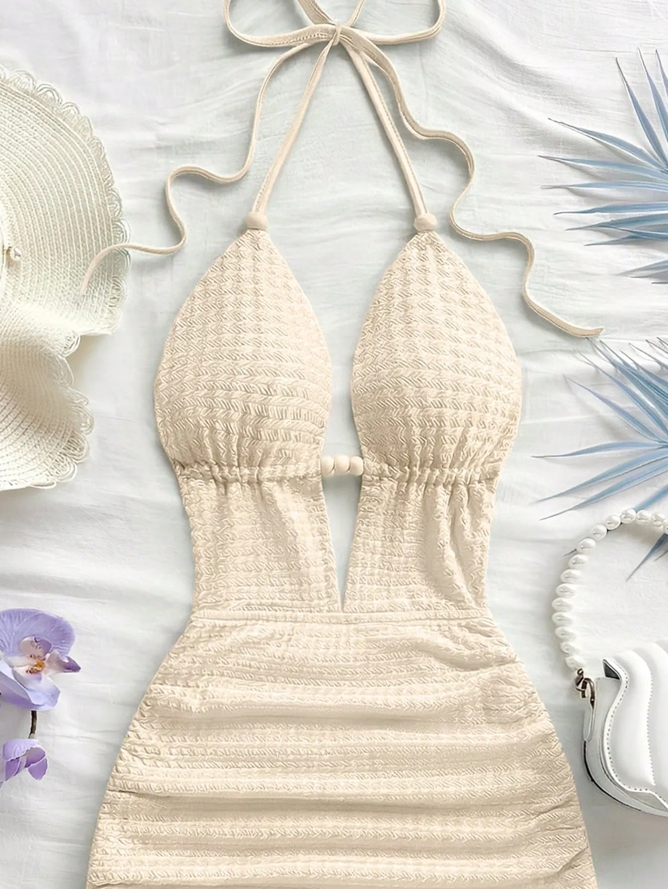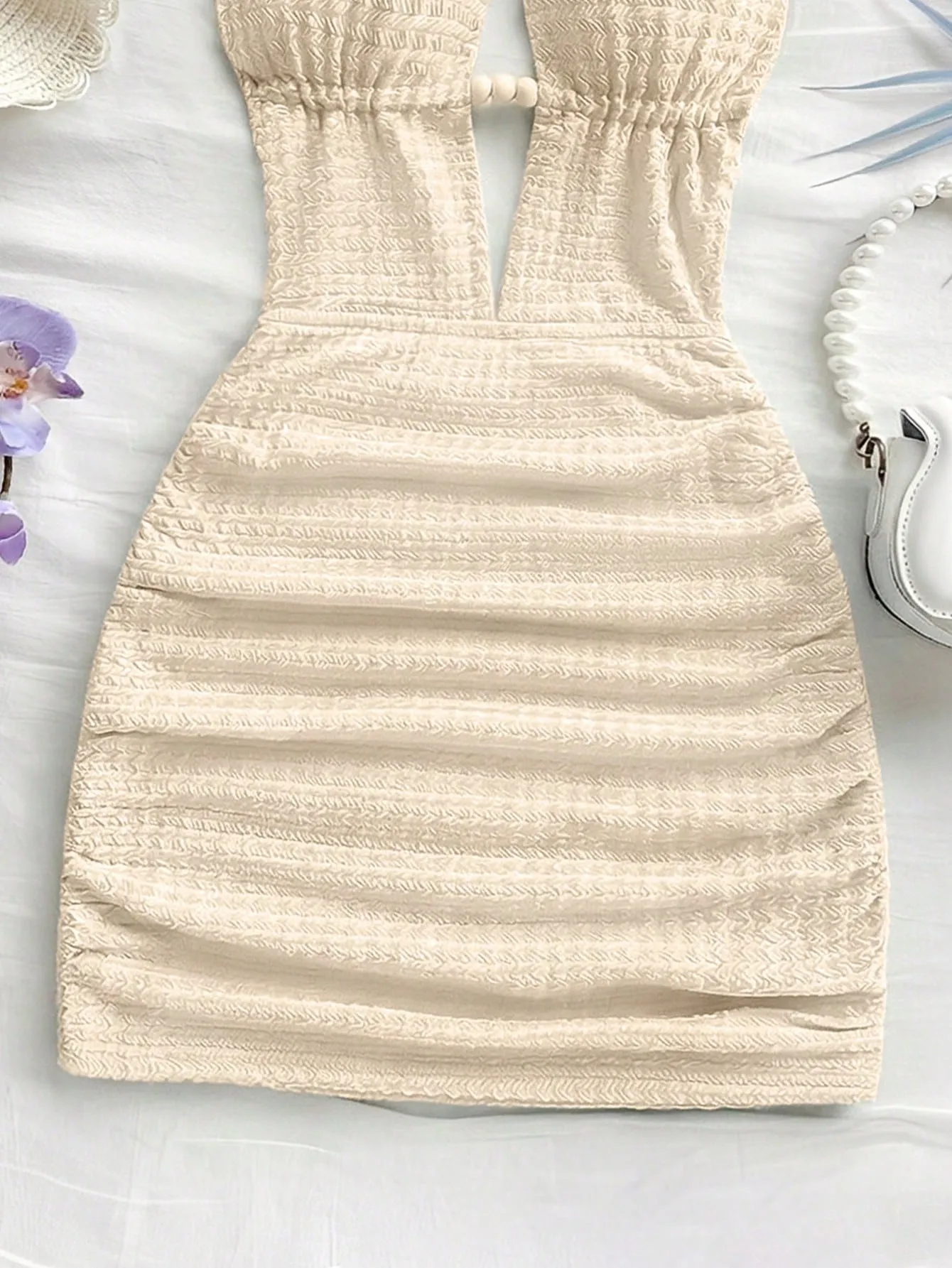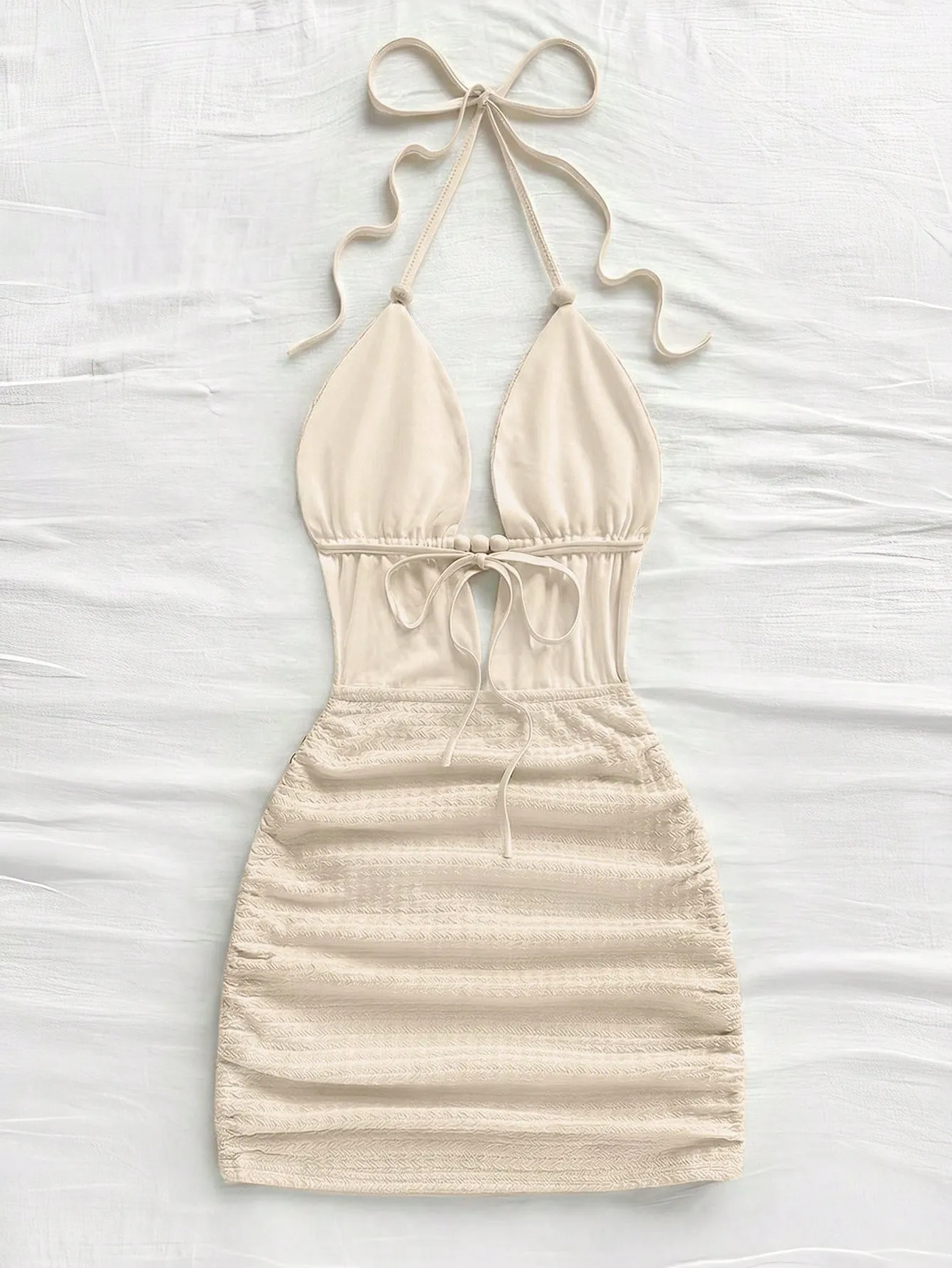 Vestido mini ajustado de color beige y espalda descubierta