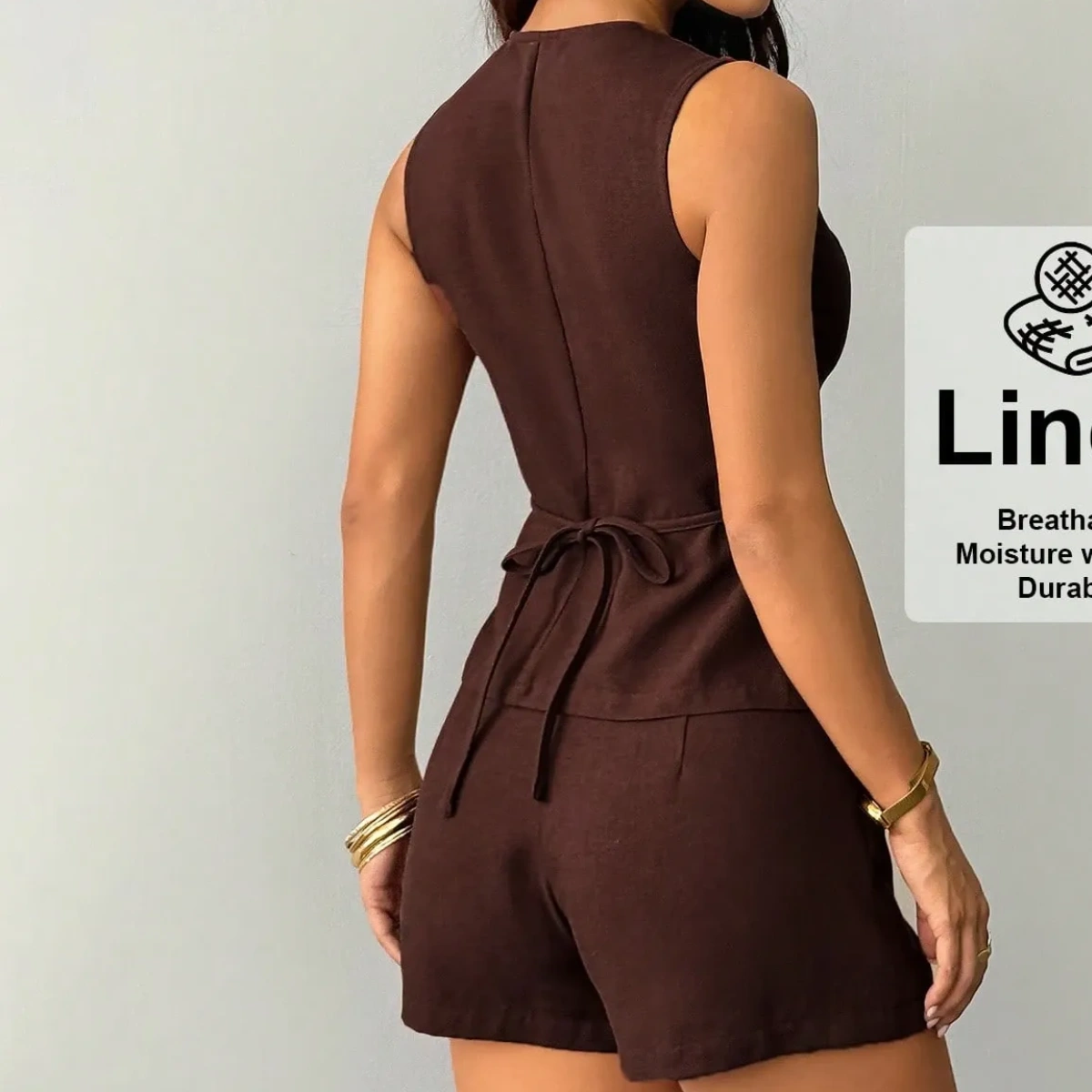 Conjunto de 2 piezas corto de lino café casual | Café talla S | Disponible (1) | Entrega hoy (pedido antes de 14:00:00) |